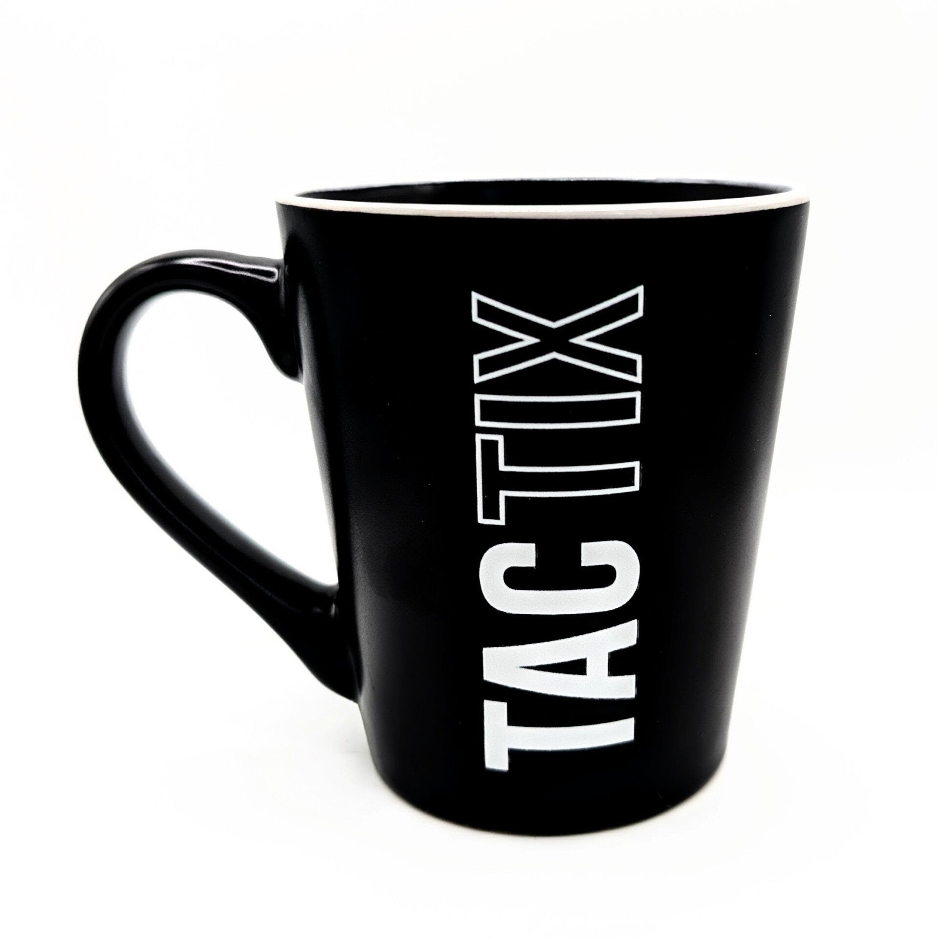 Die schwarze TACTIX Logo‑Tasse mit 330ml Volumen ist der perfekte Begleiter für Werkstatt, Büro oder Schiessstand.